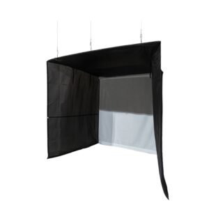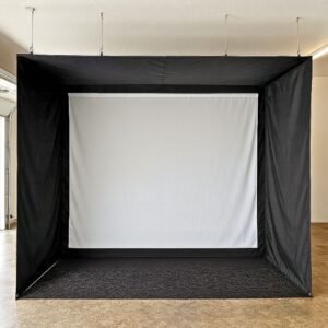 The only golf enclosure that hangs from your ceiling and rolls up cleanly in seconds—no frames on the floor, no clutter. Built for daily practice and home theater nights.